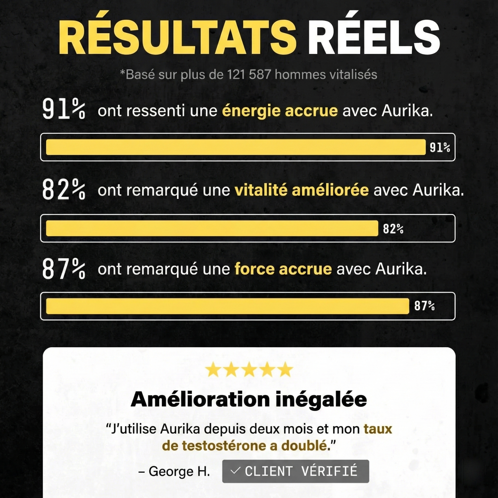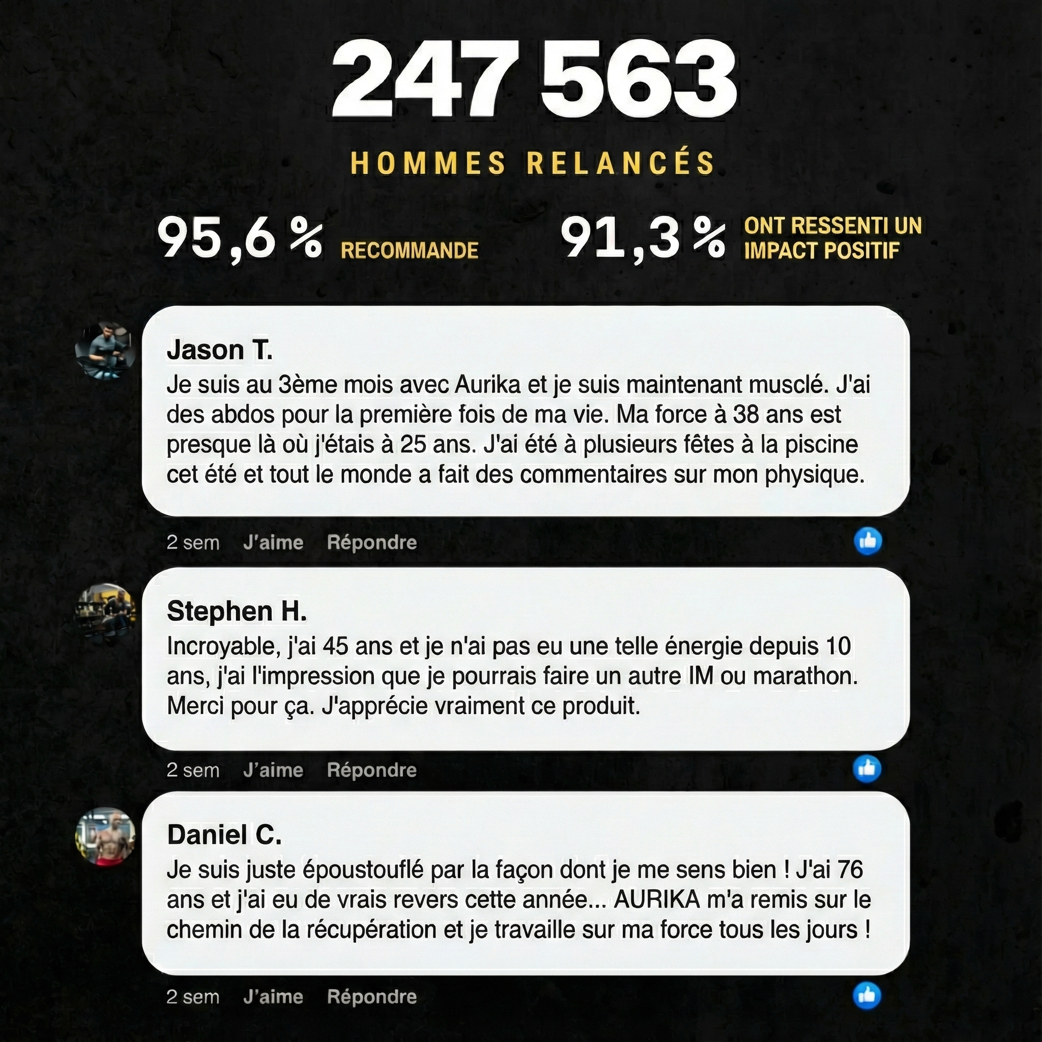 À mon âge, je pensais que la baisse de forme était inévitable. Après quelques semaines avec Aurika Testo+, je me sens plus fort, plus vivant, plus confiant. Ma femme a remarqué le changement avant moi.